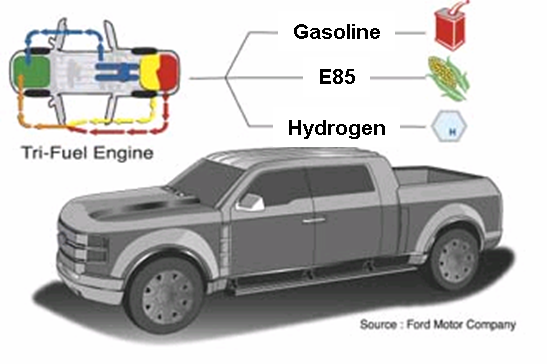 Pictured is  Fords' Tri-Flex Hydrogen engine system.  And our ECM's are the magic behind the whole show for our system - the Ford system is NOT a bi-fueling Hydrogen system - OURS is.